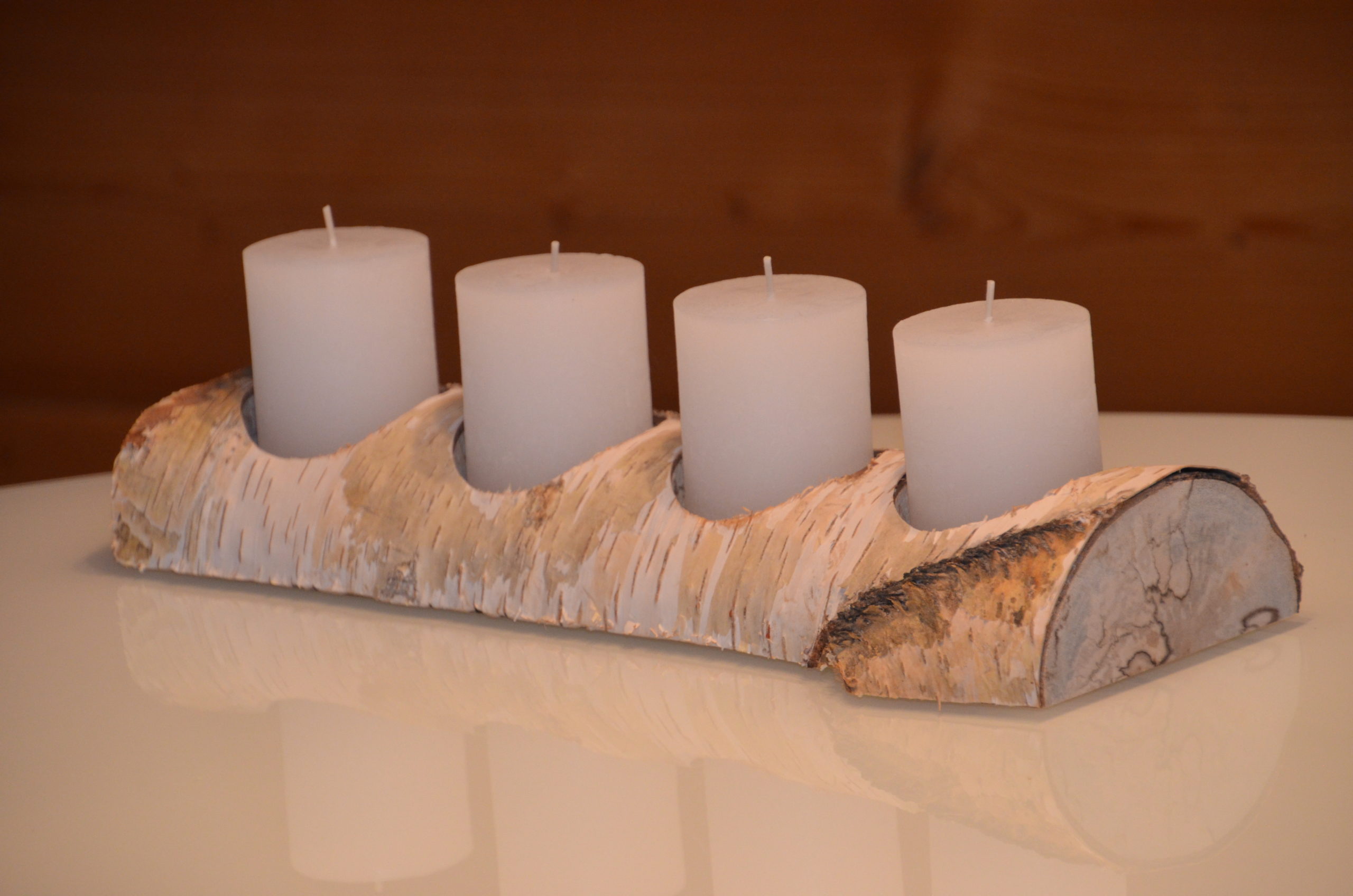 Natur-Pur: dieser Kerzenhalter ist aus einem Birkenstamm hergestellt. Auf der unteren Seite sind vier transparente Gummipuffer angebracht. Die Stirnseiten, sowie untere Seite sind poliert und nicht behandelt. Die Rinde ist naturbelassen. Für die Herstellung benutzen wir regionale Hölzer.